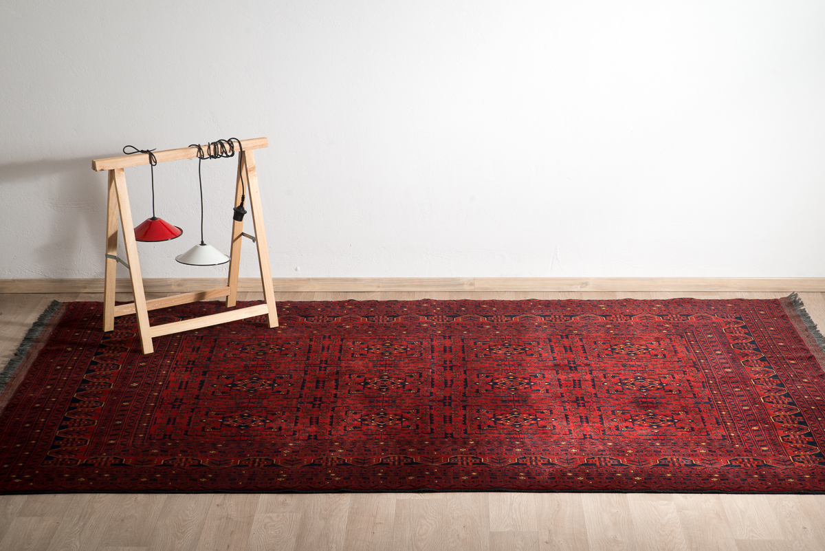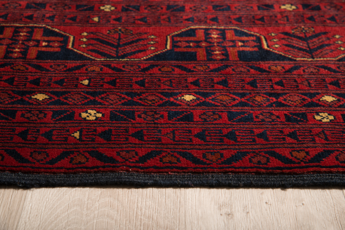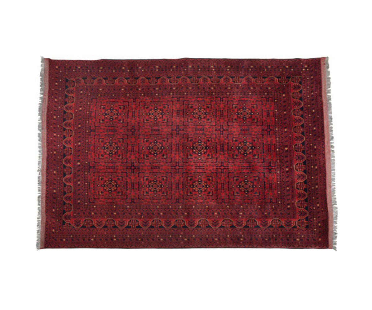 Woolen Afghan handmade carpet Khalmohamadi in a deep bordeaux color.