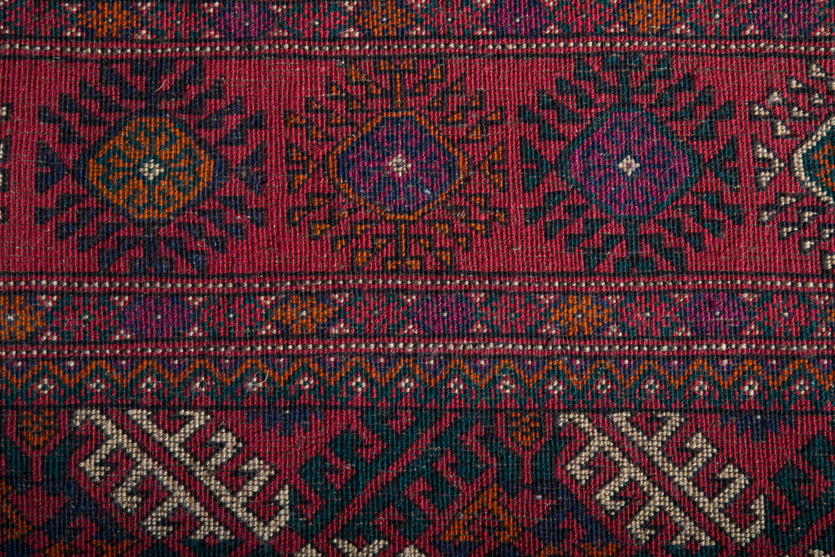 Handmade Woolen Bokhara carpet in a burgundy classic design.