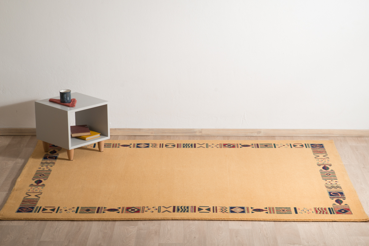Woolen machine carpet in a modern design with geometrical shape.