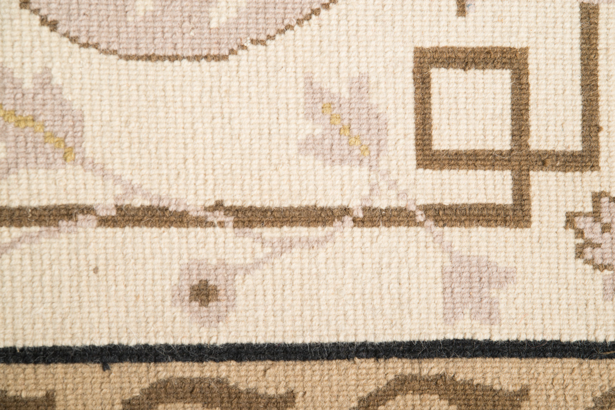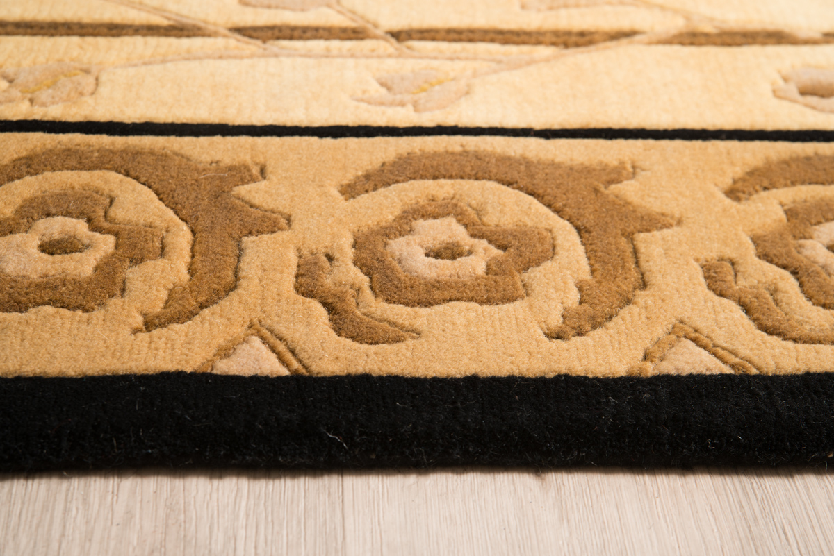 Ολόμαλλο χειροποίητο χαλί με αριστοκρατικό ανάγλυφο σχέδιο σε γήινες αποχρώσεις.