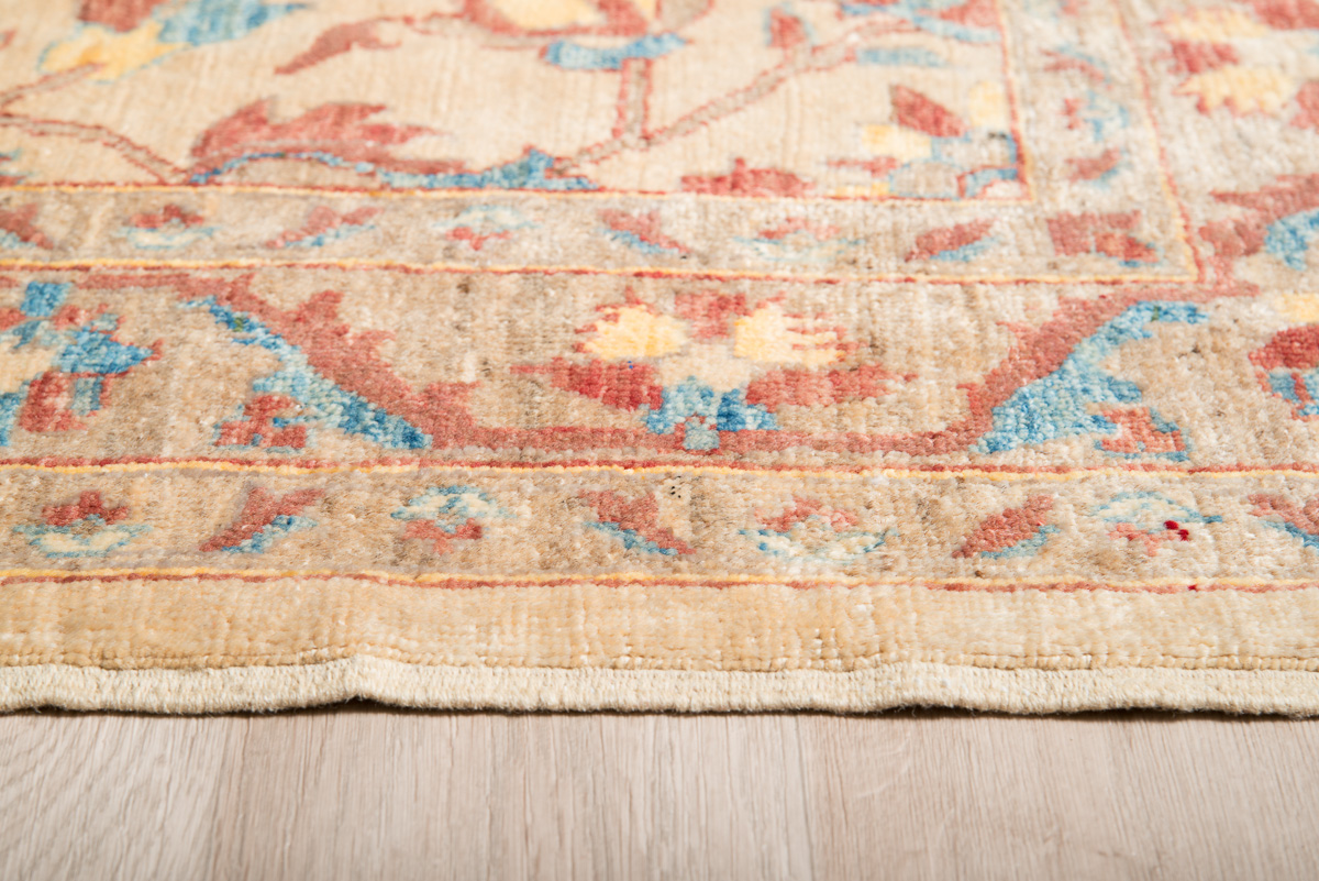 Κλασικό χειροποίητο χαλί Ziegler από 100% μαλλί. Έχει σχέδιο με γήινες αποχρώσεις σε συνδυασμό με μπλε και ώχρα πινελιές.