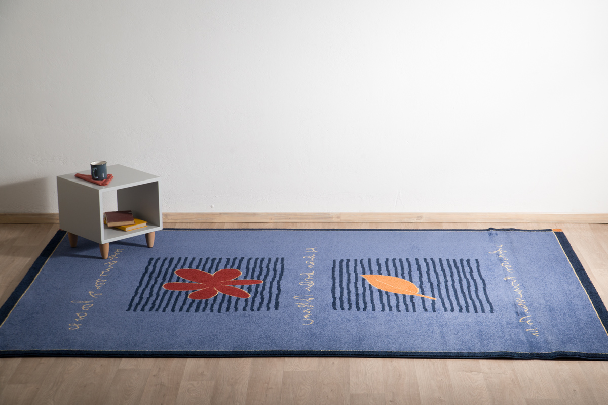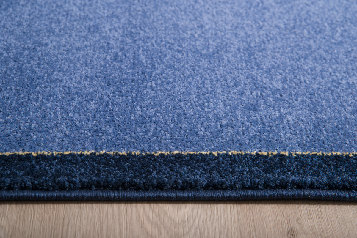 Συνθετικό χαλί μηχανής μπλε χρωματισμού σε μοντέρνο σχέδιο.