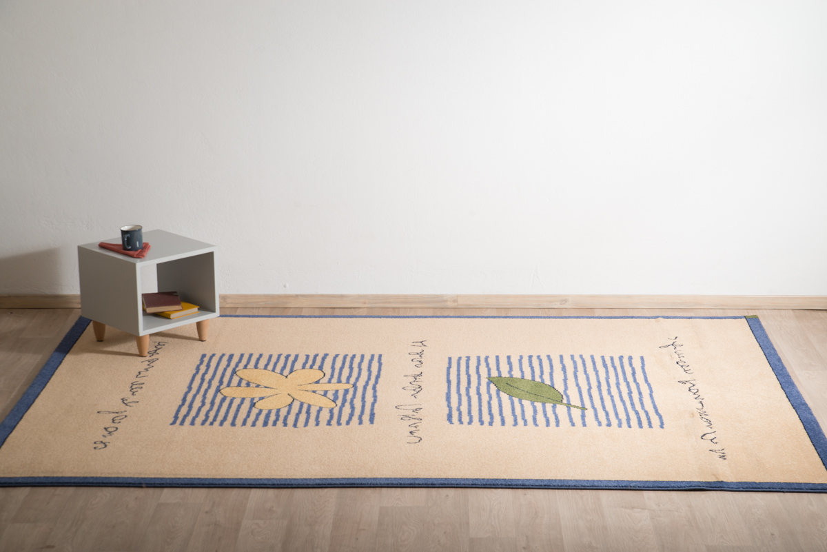 Συνθετικό χαλί μηχανής σε μπεζ χρώμα με μοντέρνο σχέδιο.