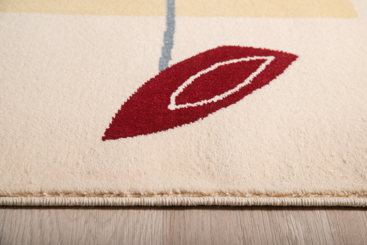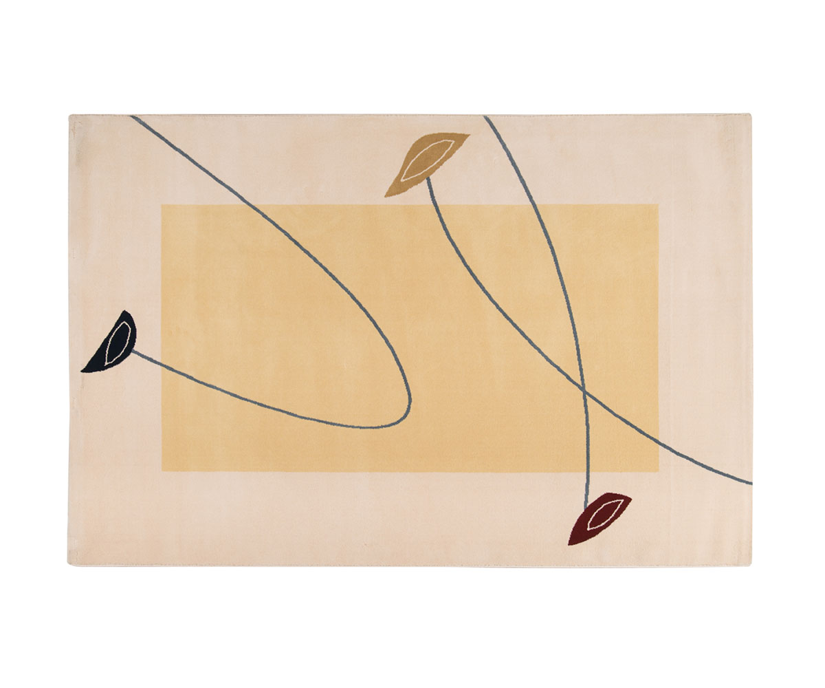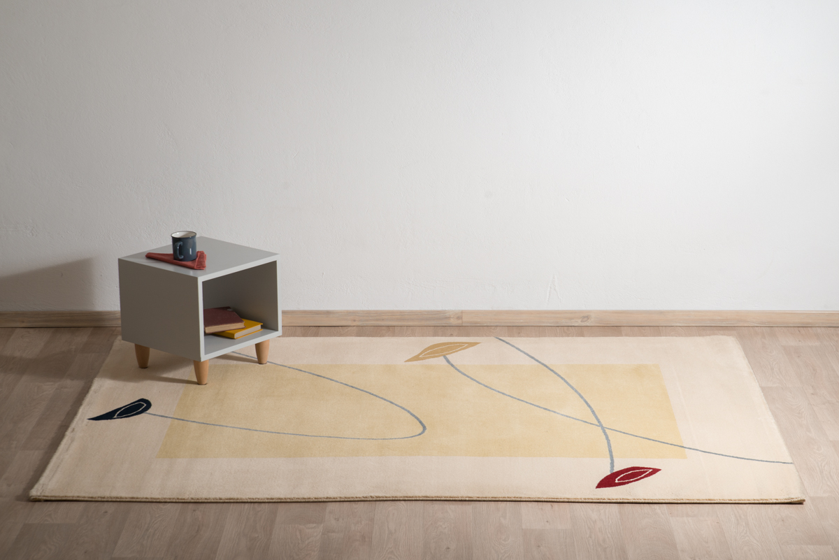 Χαλί μηχανής σε μπεζ αποχρώσεις με γκρι καμπύλες και πολύχρωμα λουλούδια.