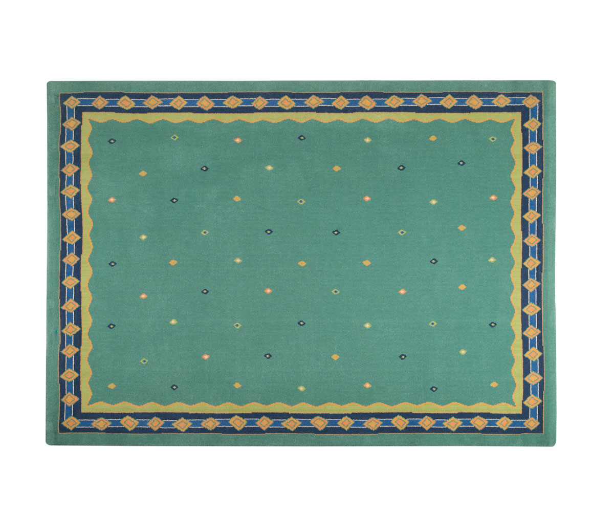 Ολόμαλλο χαλί μηχανής με γεωμετρικό σχέδιο και εντυπωσιακή μπορντούρα.