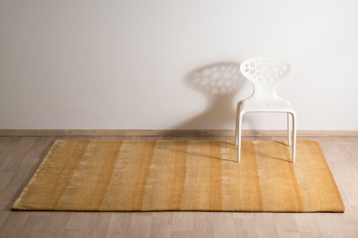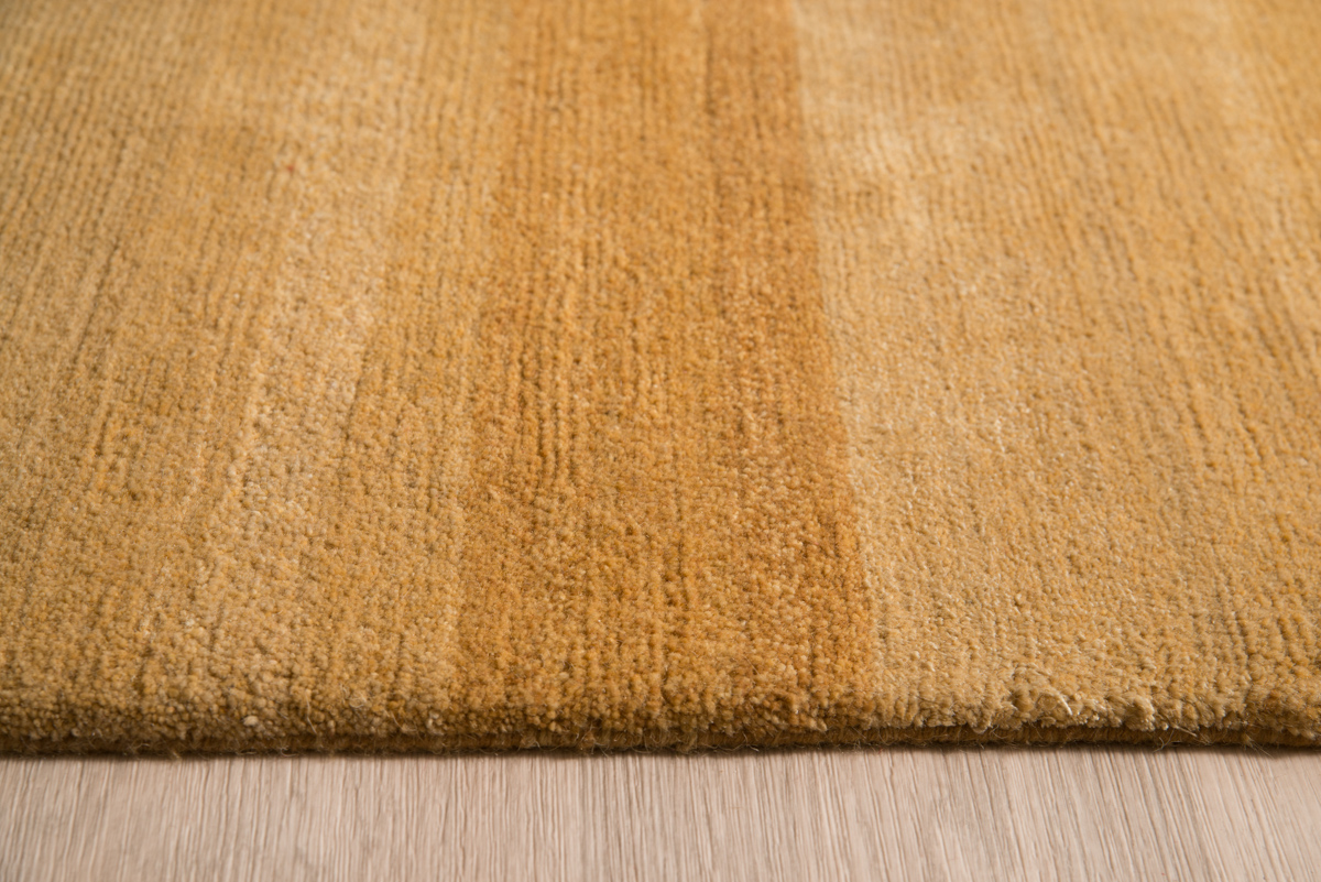 Χειροποίητο χαλί με σύνθεση από μαλλί και μετάξι. Έχει μοντέρνα γραμμή και μπεζ απόχρωση με διακριτικό σχέδιο από ρίγες σε αντίθεση.