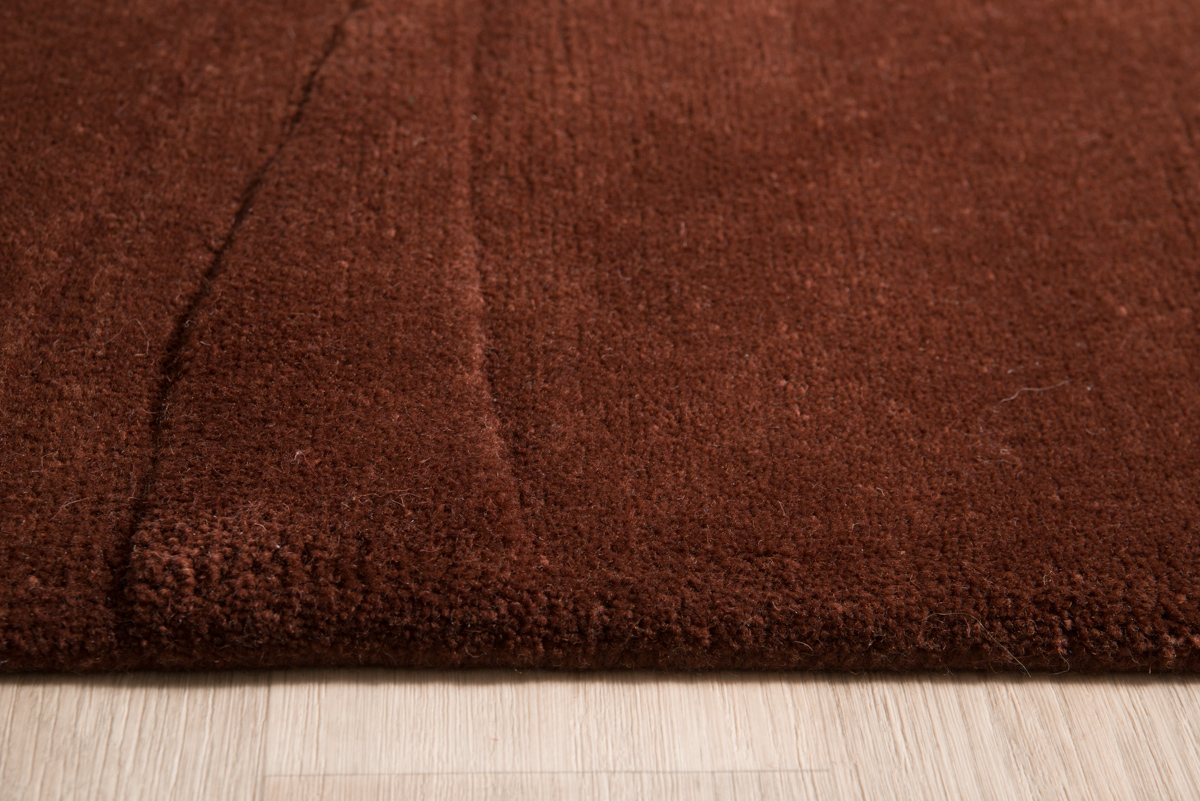 Χειροποίητο χαλί από 100% μαλλί σε μοντέρνα γραμμή με καφέ απόχρωση και διακριτικό ανάγλυφο σχέδιο.