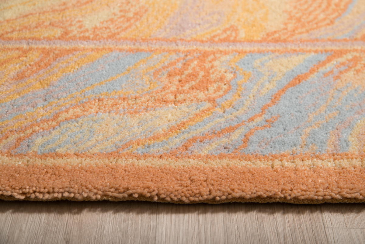 Μοντέρνο χαλί μηχανής σε μπεζ και πορτοκαλί αποχρώσεις με minimal διακριτικό σχέδιο σε σιέλ χρώμα.