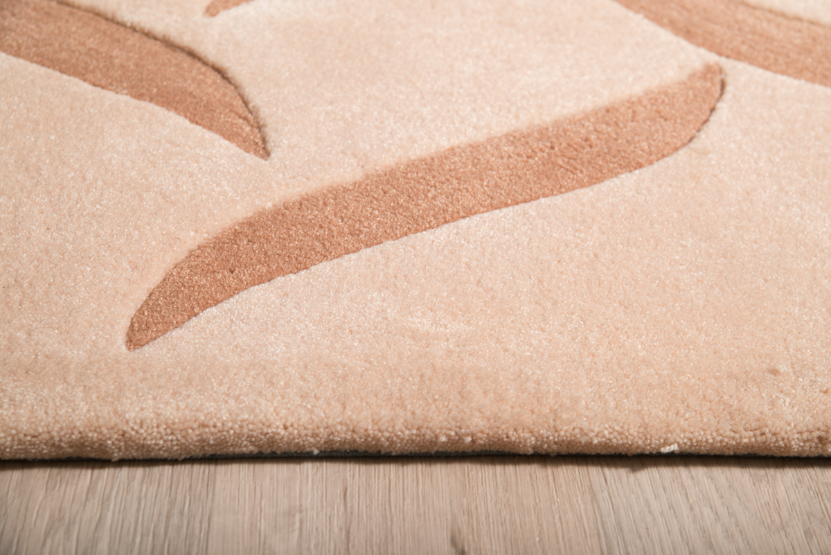 Μοντέρνο χαλί μηχανής με μπεζ βάση και ιδιαίτερο σχέδιο σε καφέ χρώμα.