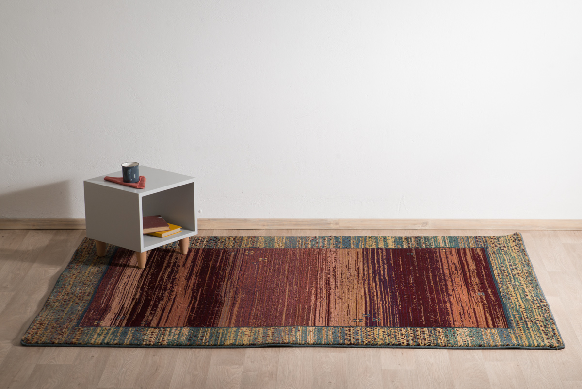 Xαλί μηχανής με μοντέρνο σχέδιο στην ύφανση και πολλούς χρωματισμούς.
