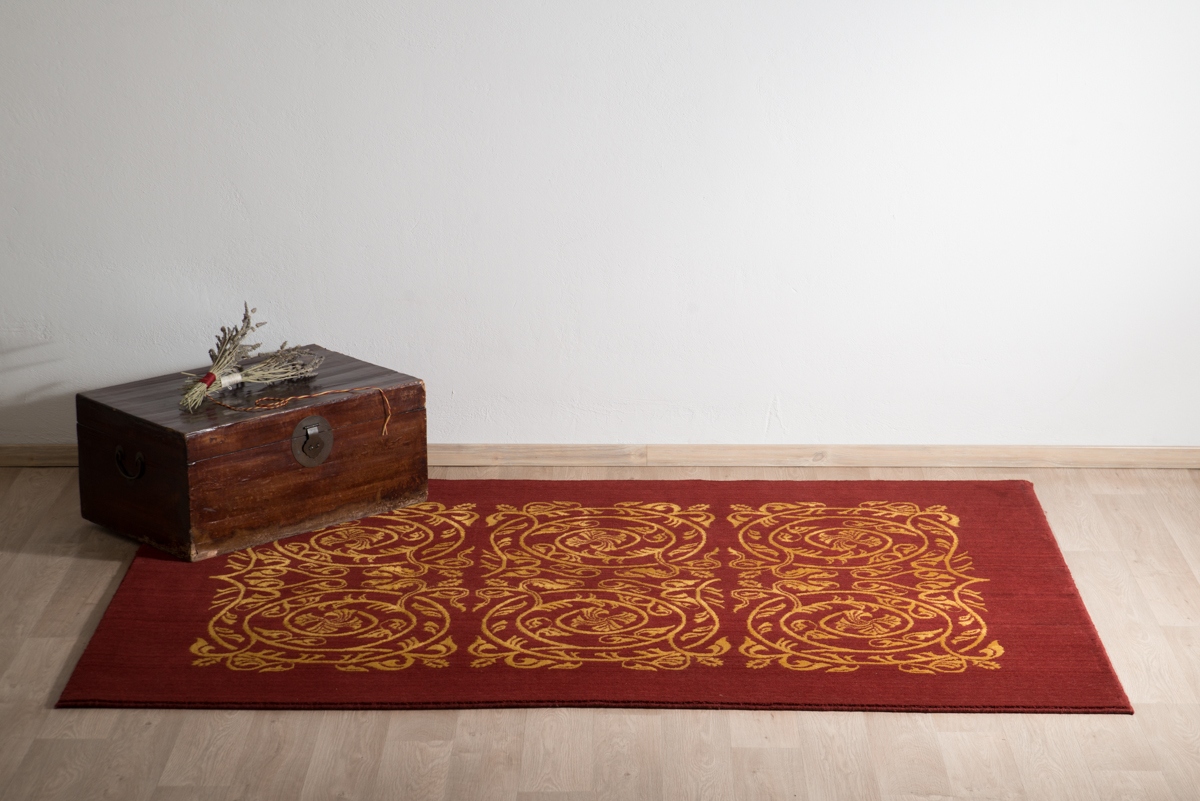 Xαλί μηχανής σε μπορντό απόχρωση με γεωμετρικό σχέδιο σε αντίθεση.