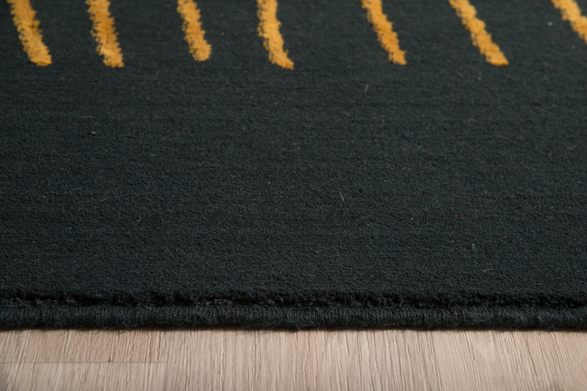 Xαλί μηχανής μοντέρνο με βάση σε μαύρη απόχρωση και γραμμικό σχέδιο στο κέντρο.