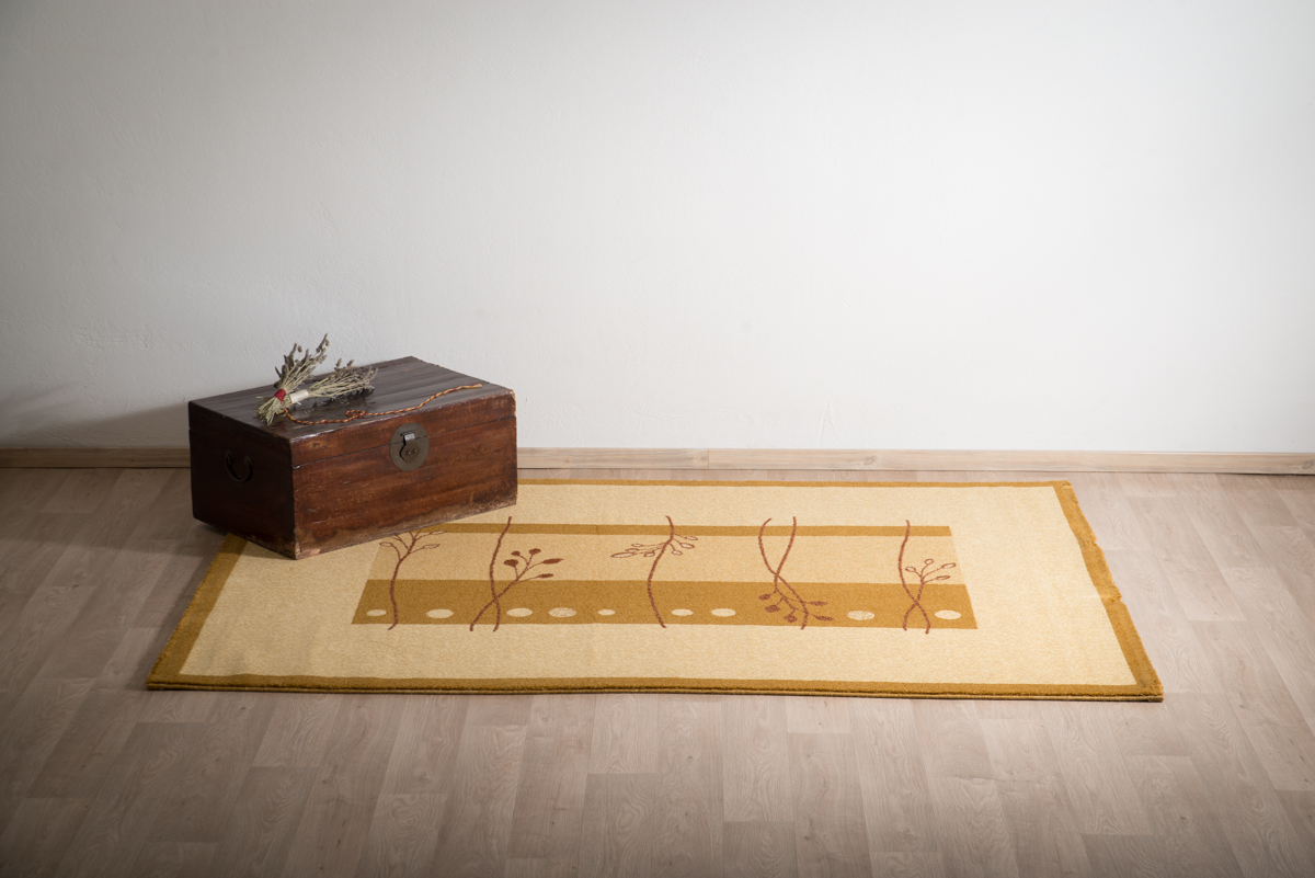 Σύμμεικτο μοντέρνο χαλί μηχανής σε μπεζ και κανελί αποχρώσεις με σχέδιο στο κέντρο από κλαδιά.