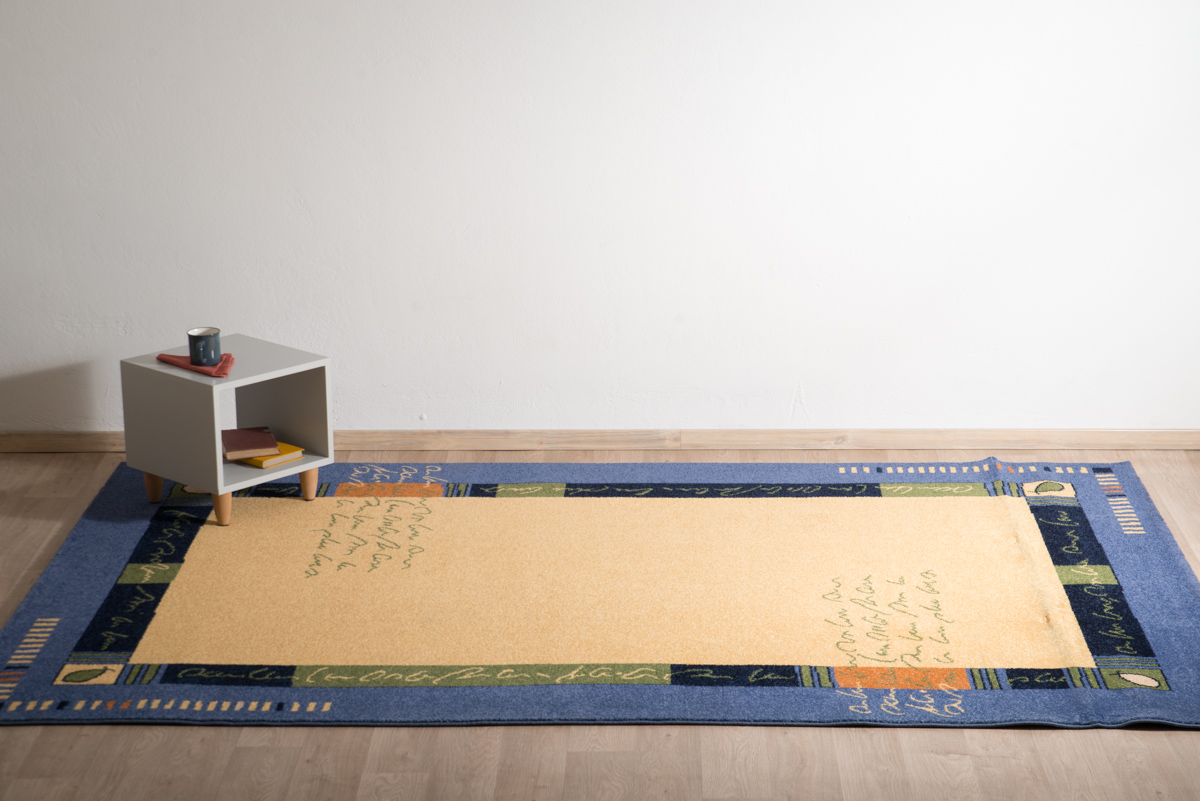 Συνθετικό χαλί μηχανής σε κίτρινο φόντο με μοντέρνο σχέδιο. Ιδιαίτερα οικονομική λύση. Ιδανικό για φοιτητές.