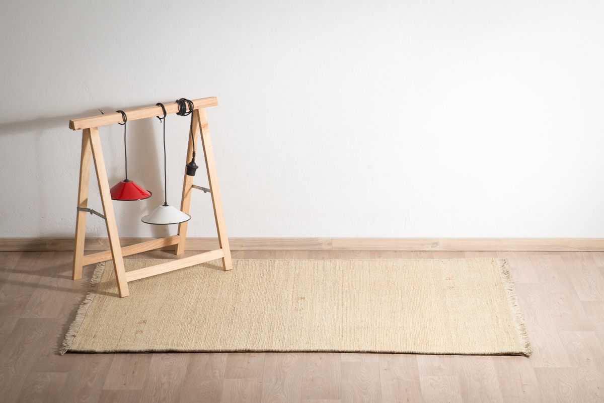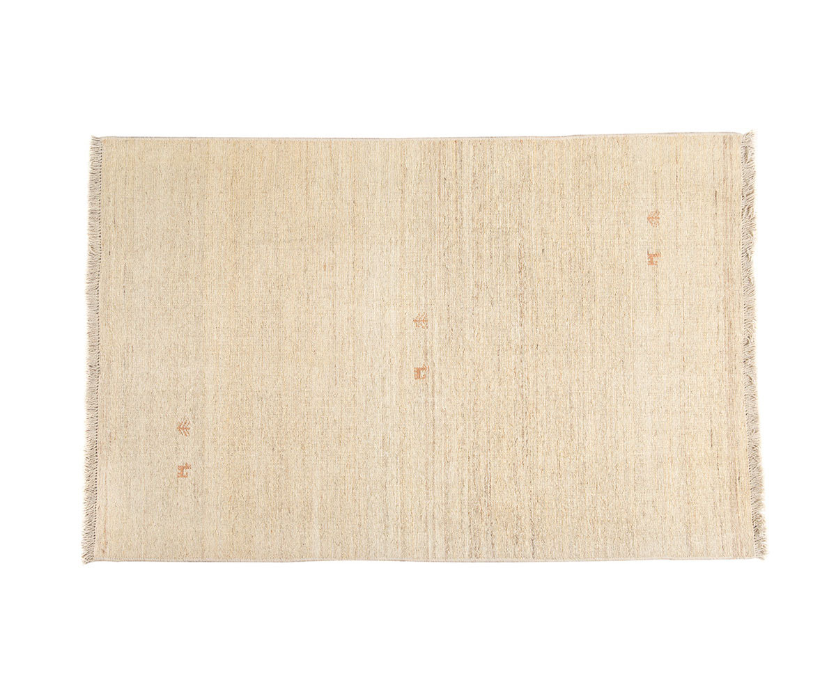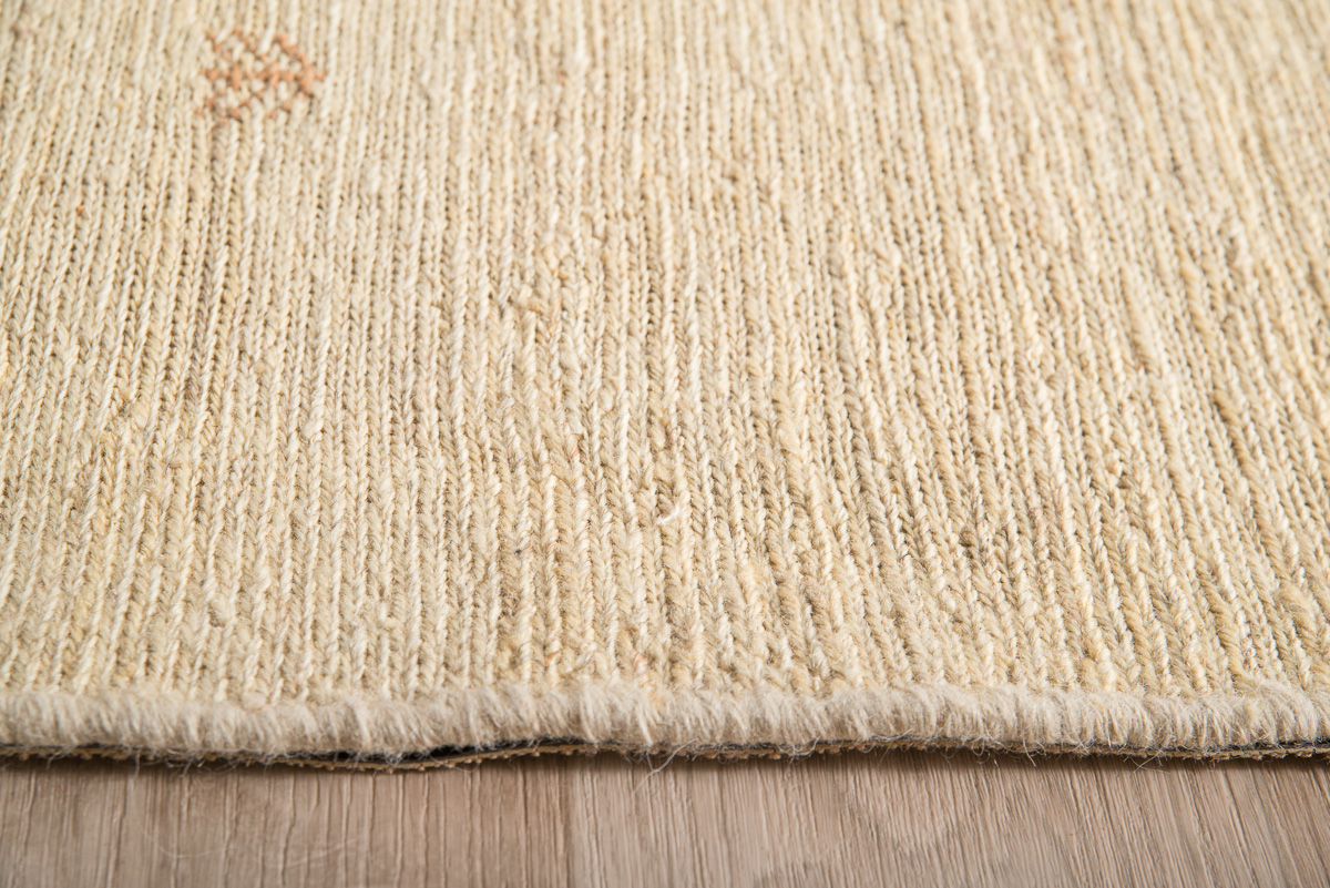 Χειροποίητο κιλίμι από 100% μαλλί σε μπεζ απόχρωση με διακριτικό σχέδιο.