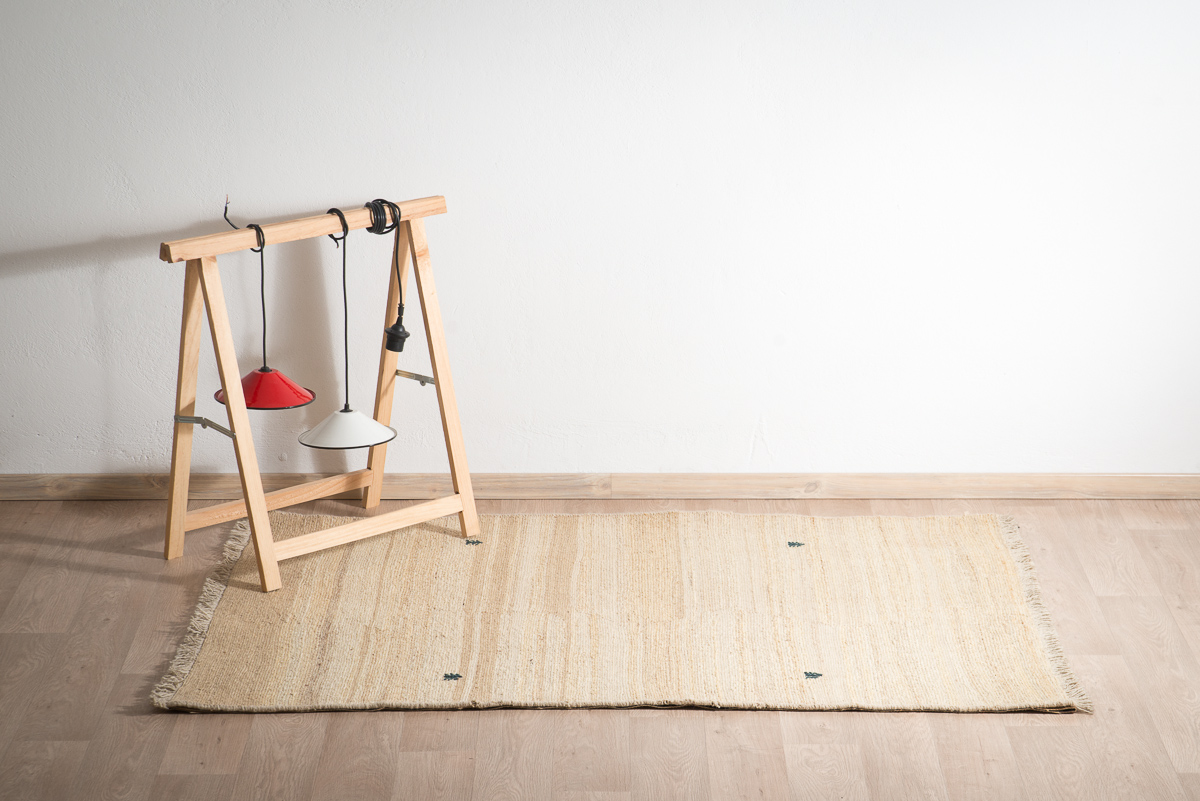 Χειροποίητο κιλίμι από 100% μαλλί σε μπεζ απόχρωση με διακριτικό σχέδιο.