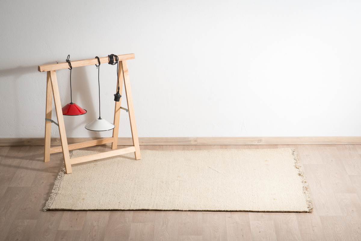 Χειροποίητο κιλίμι από 100% μαλλί σε μπεζ απόχρωση με διακριτικό σχέδιο.
