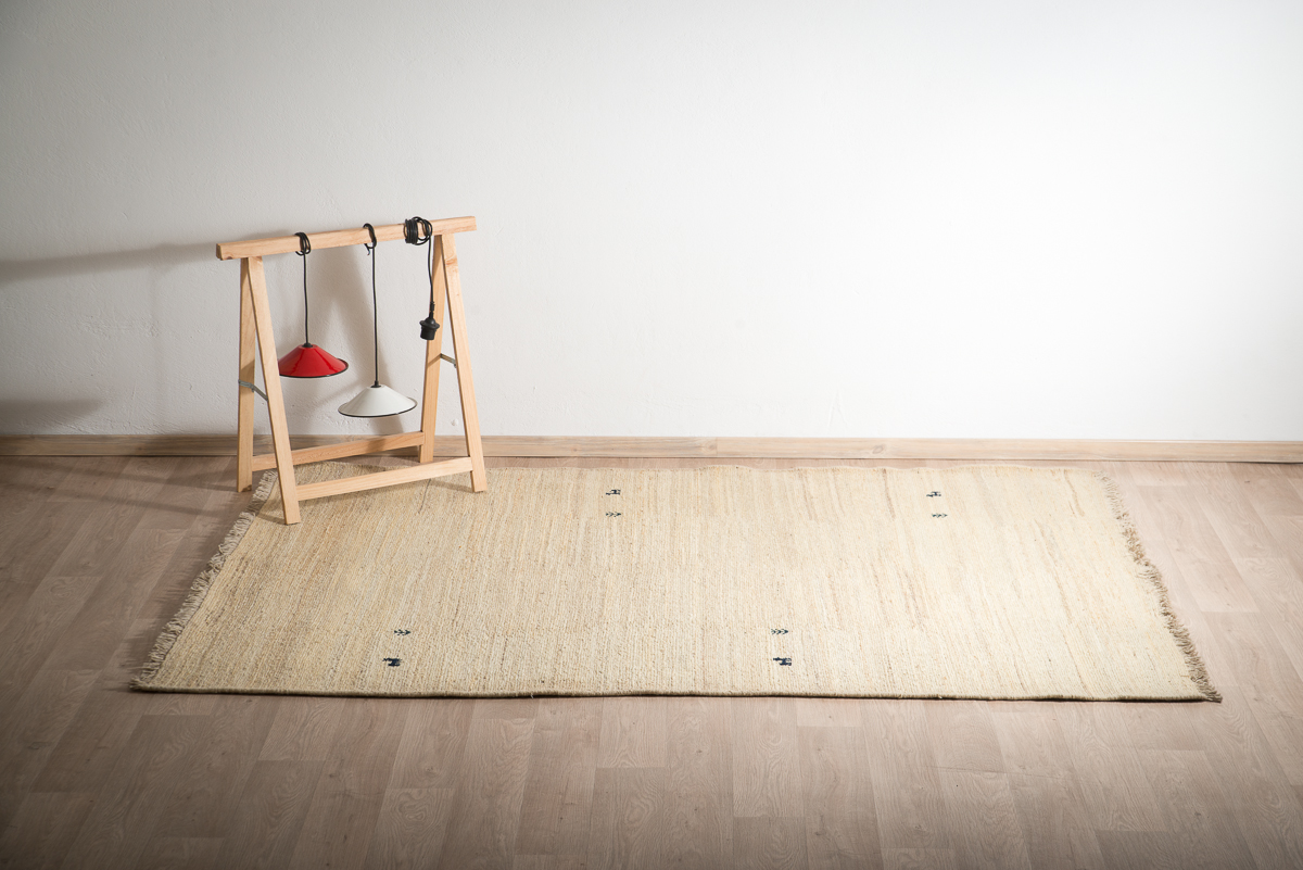 Χειροποίητο κιλίμι από 100% μαλλί σε μπεζ απόχρωση με πολύ διακριτικό σχέδιο.