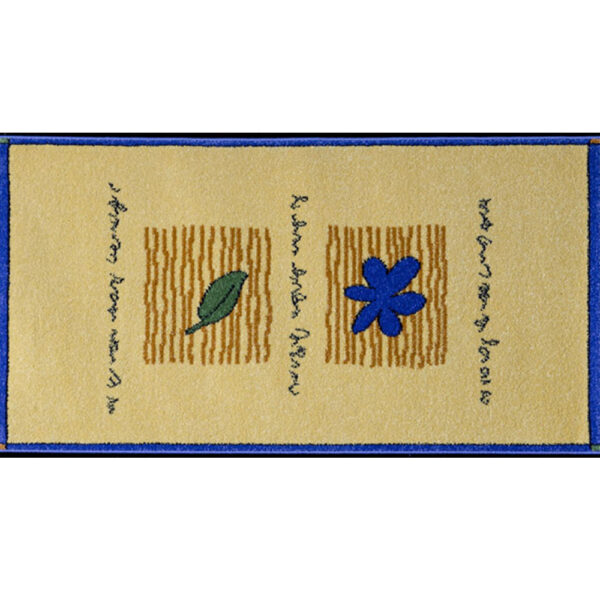 Μοντέρνο υφαντό χαλί μηχανής σε μπεζ απόχρωση με minimal σχέδιο από φύλλα σε μαύρο χρωματισμό.