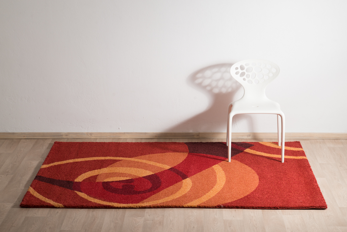 Χαλί μηχανής σε κεραμιδί βάση με μοντέρνο σχέδιο σε πορτοκαλί τόνους.